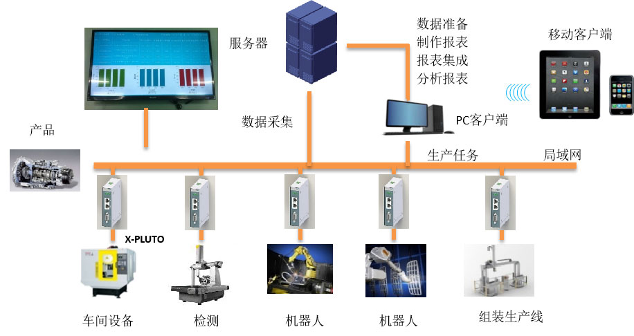 ● 將設(shè)備,機器人,產(chǎn)線所有加工設(shè)備的狀態(tài),產(chǎn)量,加工過程參數(shù)數(shù)據(jù),的測量結(jié)果 等實時采集數(shù)據(jù)。